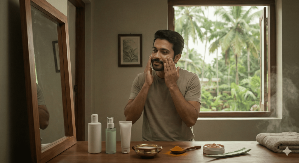 Skin care for men in Kerala has moved beyond soap and water. Due to high humidity, sun exposure, and pollution, men are adopting minimal yet consistent skin-care routines. The focus is on cleanliness, hydration, and protection.