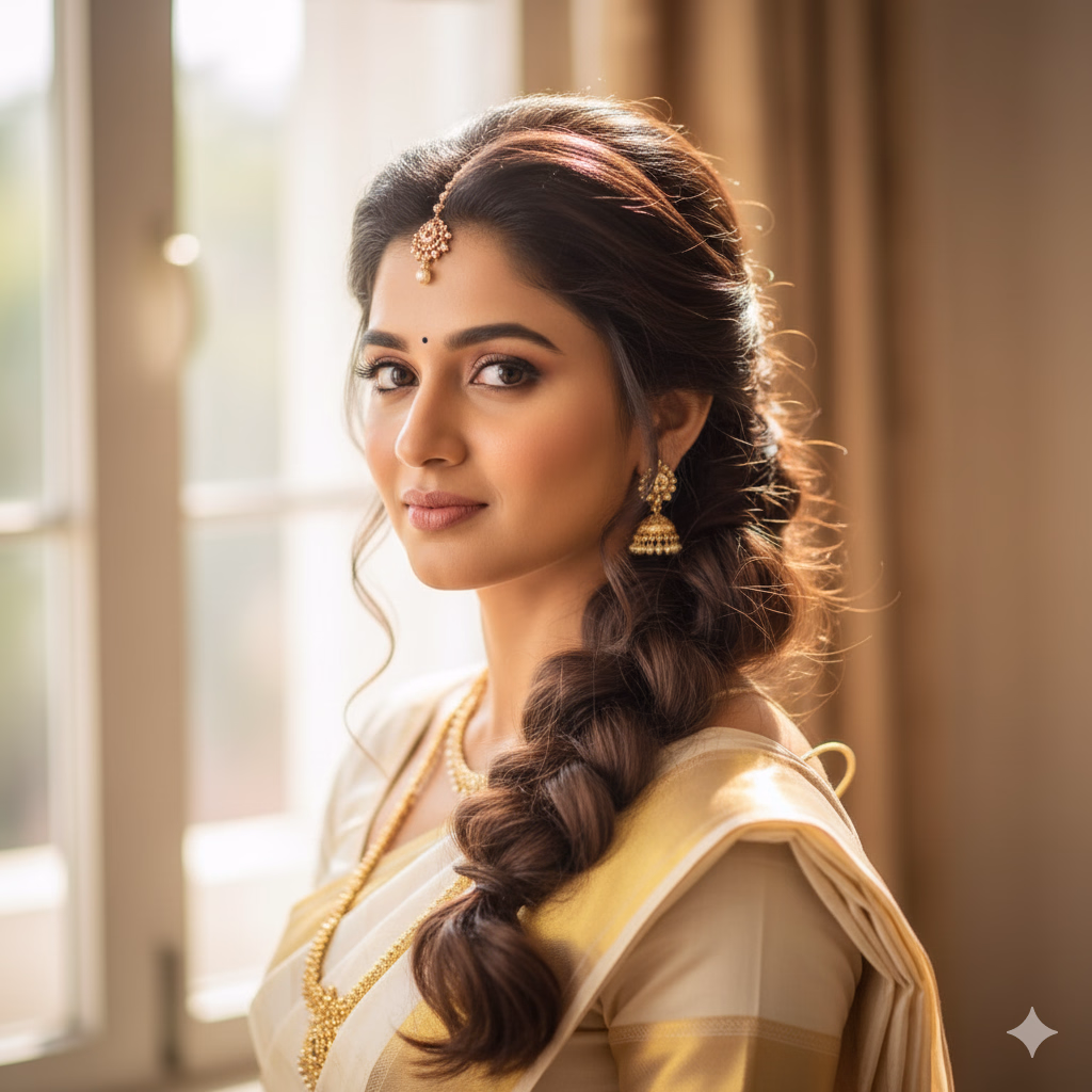 While hair remains grand, the overall styling trend is shifting toward more natural textures and volumes rather than overly stiff hairdos. According to recent bridal-beauty trend reports in Kerala, the “barely-there makeup” look is in — and hair is following suit with more movement and less rigidity.