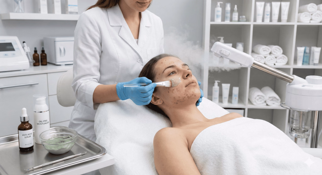 Choosing the right facial is very important for acne-prone skin. The best options are Deep Cleansing Anti-Acne Facial, Hydra Facial, and mild chemical peel facials performed by professionals. These treatments clean pores, control oil, reduce bacteria, and soothe inflammation without damaging your skin.